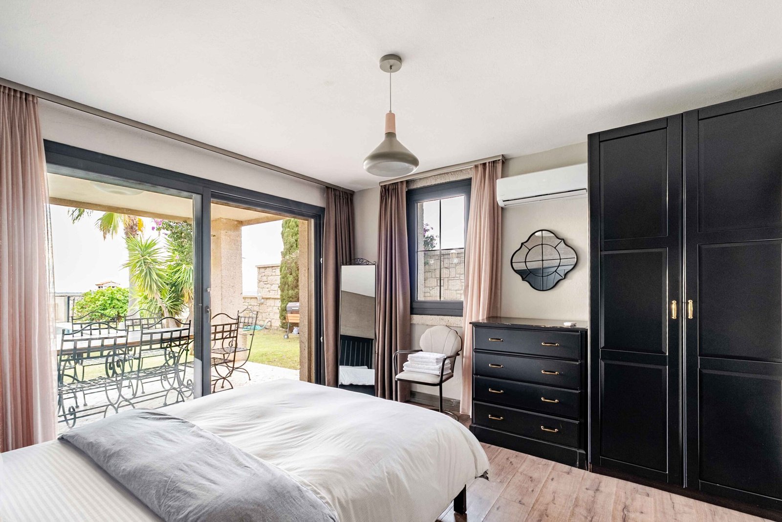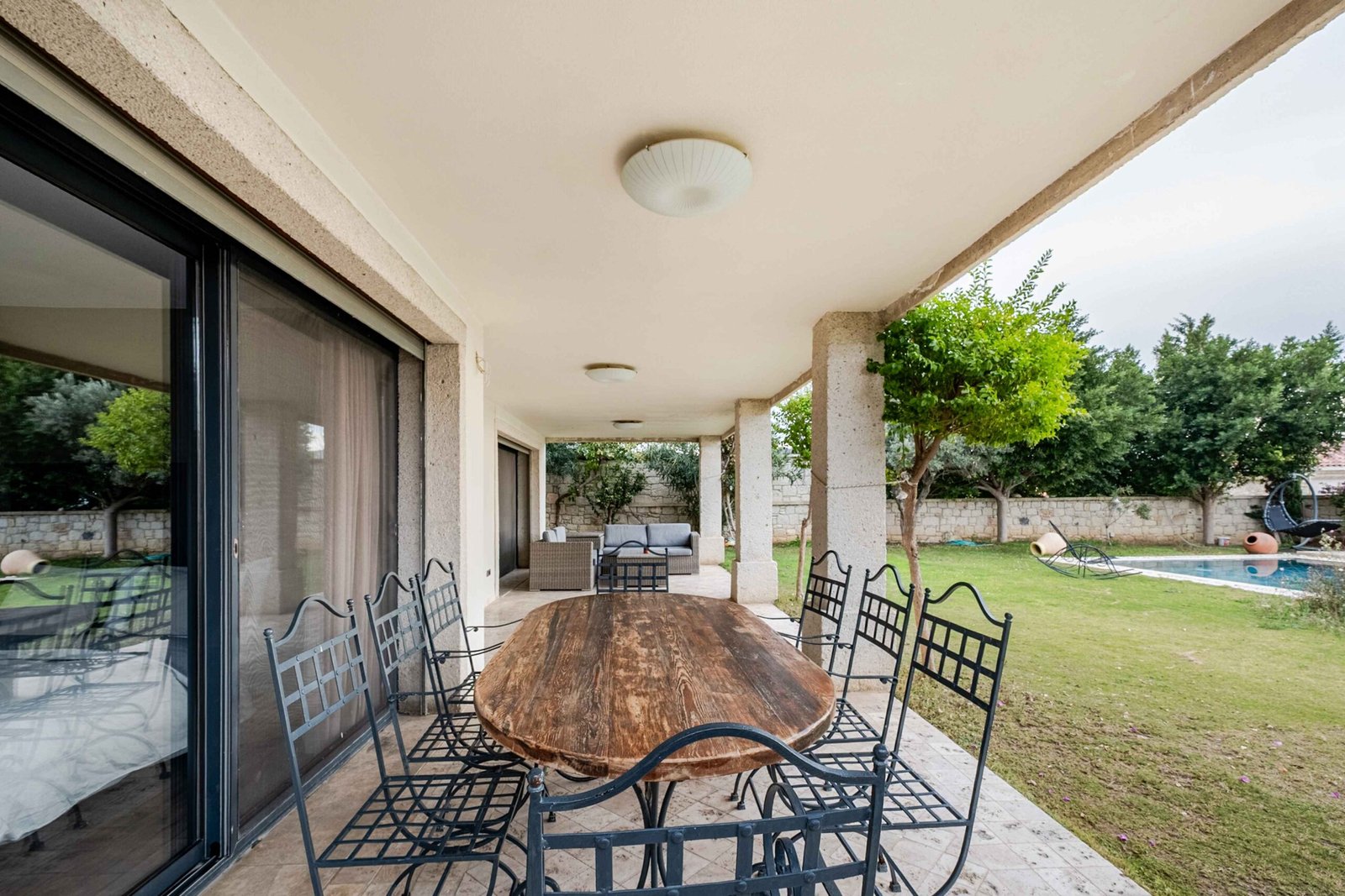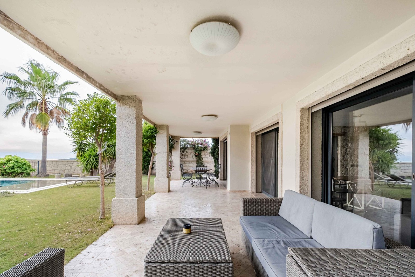 7 yatak odası, 9 banyo, 2 geniş salon ve 2 tam donanımlı mutfağıyla kalabalık aileler ve geniş gruplar için tasarlanmıştır. 60 m² özel yüzme havuzu, yaklaşık 300 m² peyzajlı bahçe alanı, ön ve arka bahçe düzeni ve 84 m² geniş terasıyla hem iç hem dış yaşam alanlarında ferah bir deneyim sunar.