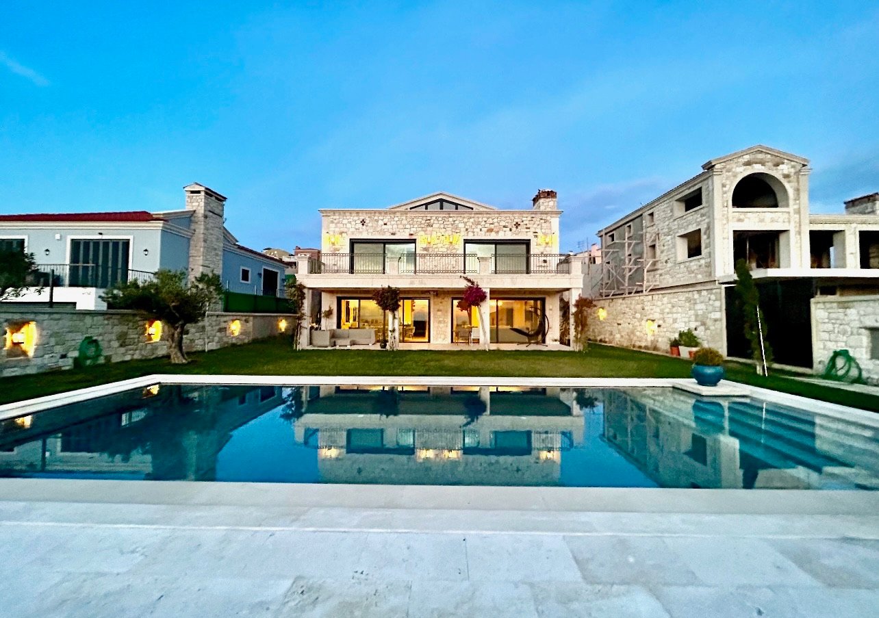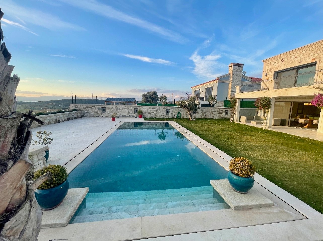 Zarif taş mimarisi, ferah yaşam alanları ve eşsiz manzarasıyla bu villa, Çeşme’de konforlu ve unutulmaz bir tatil için ideal bir seçenektir.